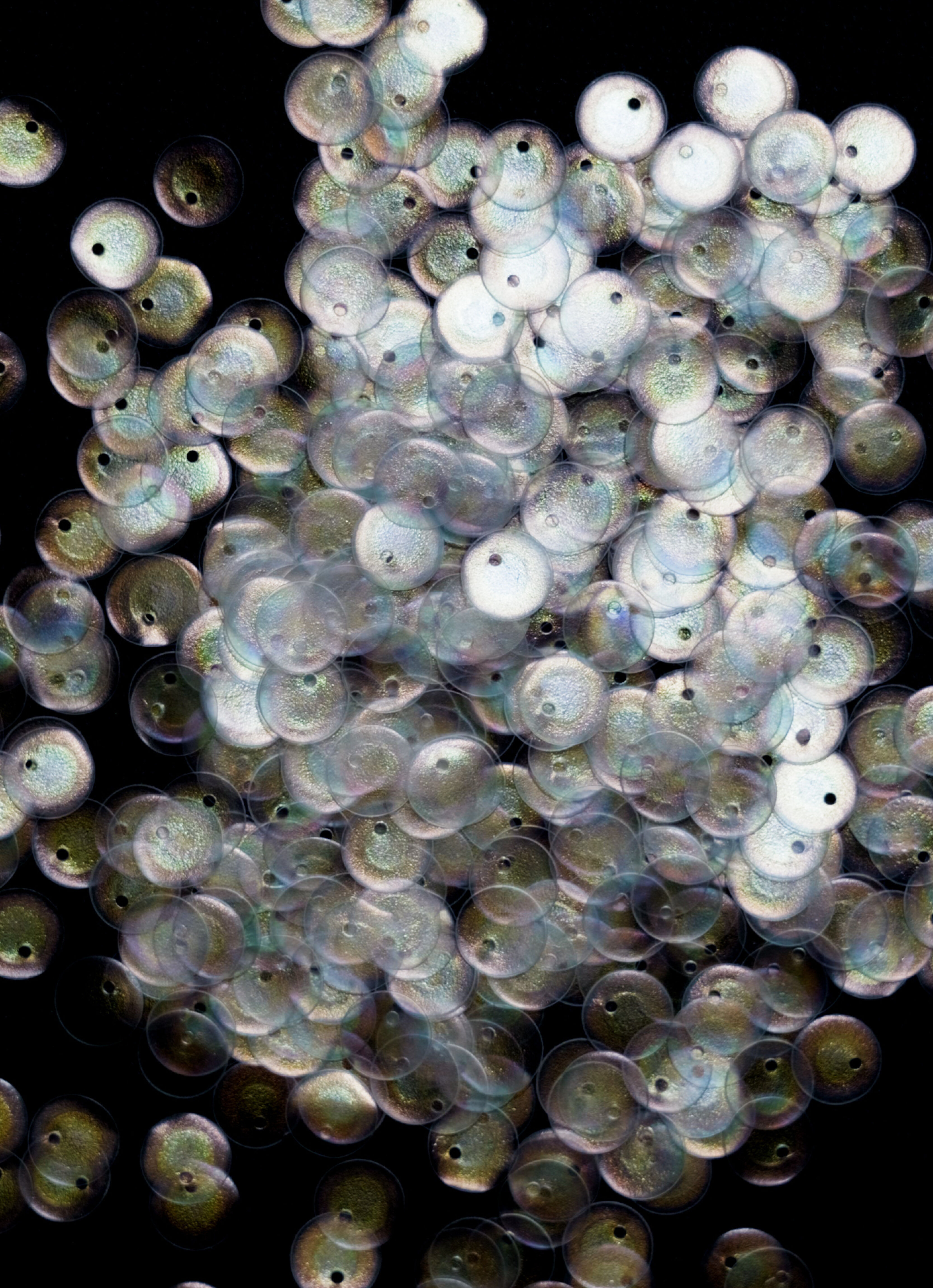 Although they are small, the collective impact of sequins is massive. Most sequins are tiny synthetic-coated or metallic-foiled disks comprised of petroleum-based microplastics. Widely used within all sectors of fashion, textiles and consumer goods, they constantly leak into our environment, causing problems to both us and our planet.