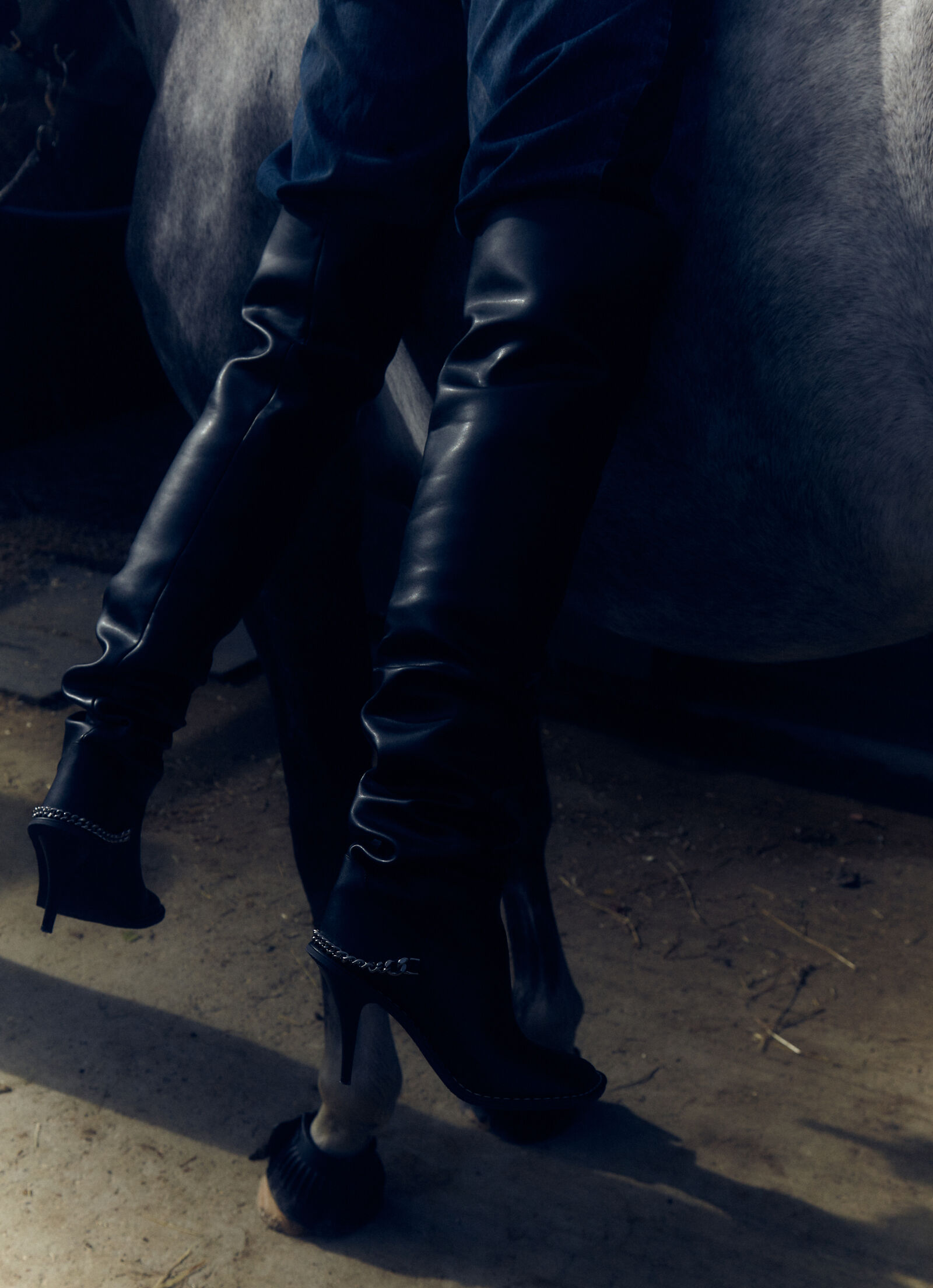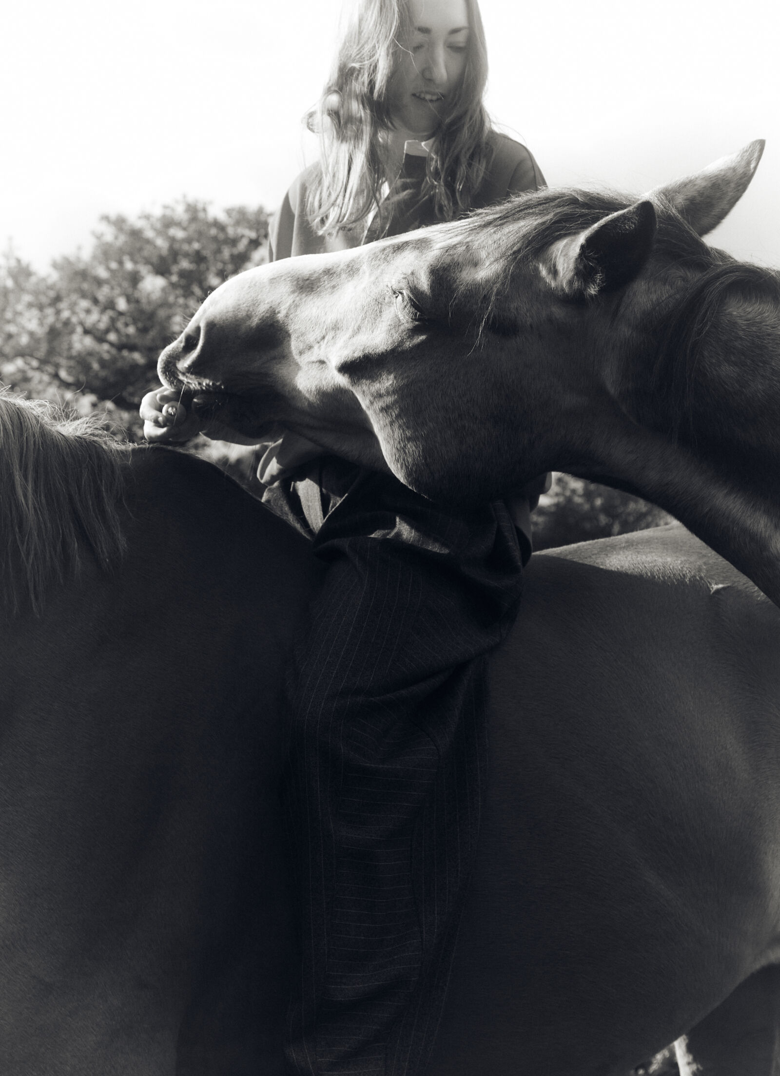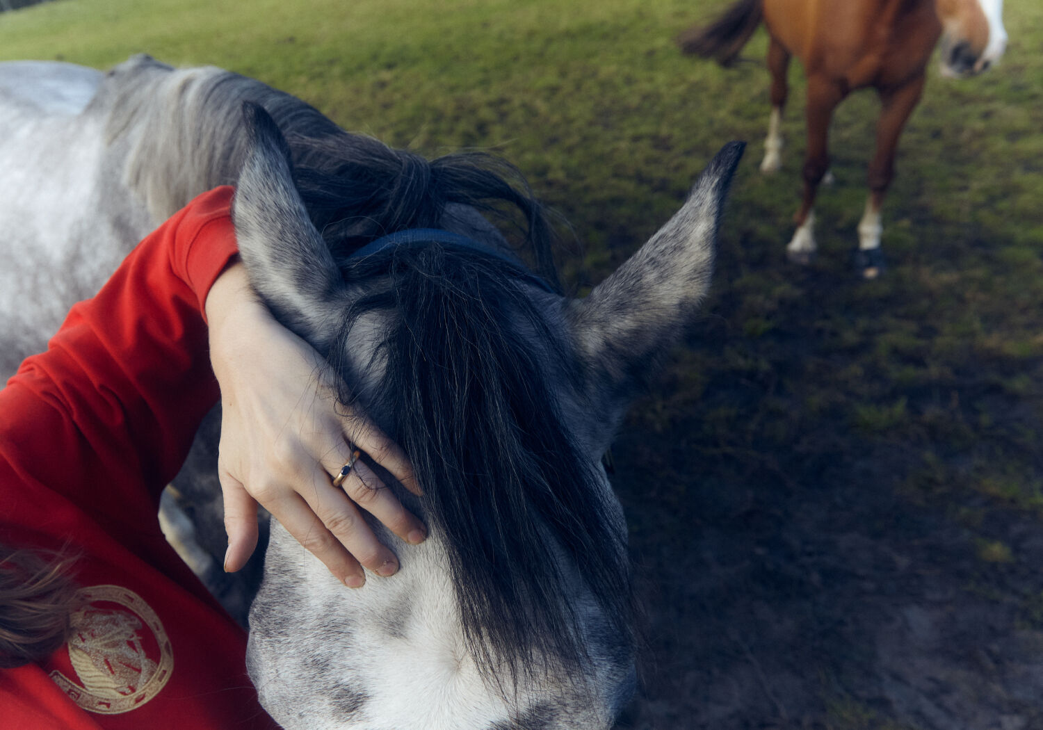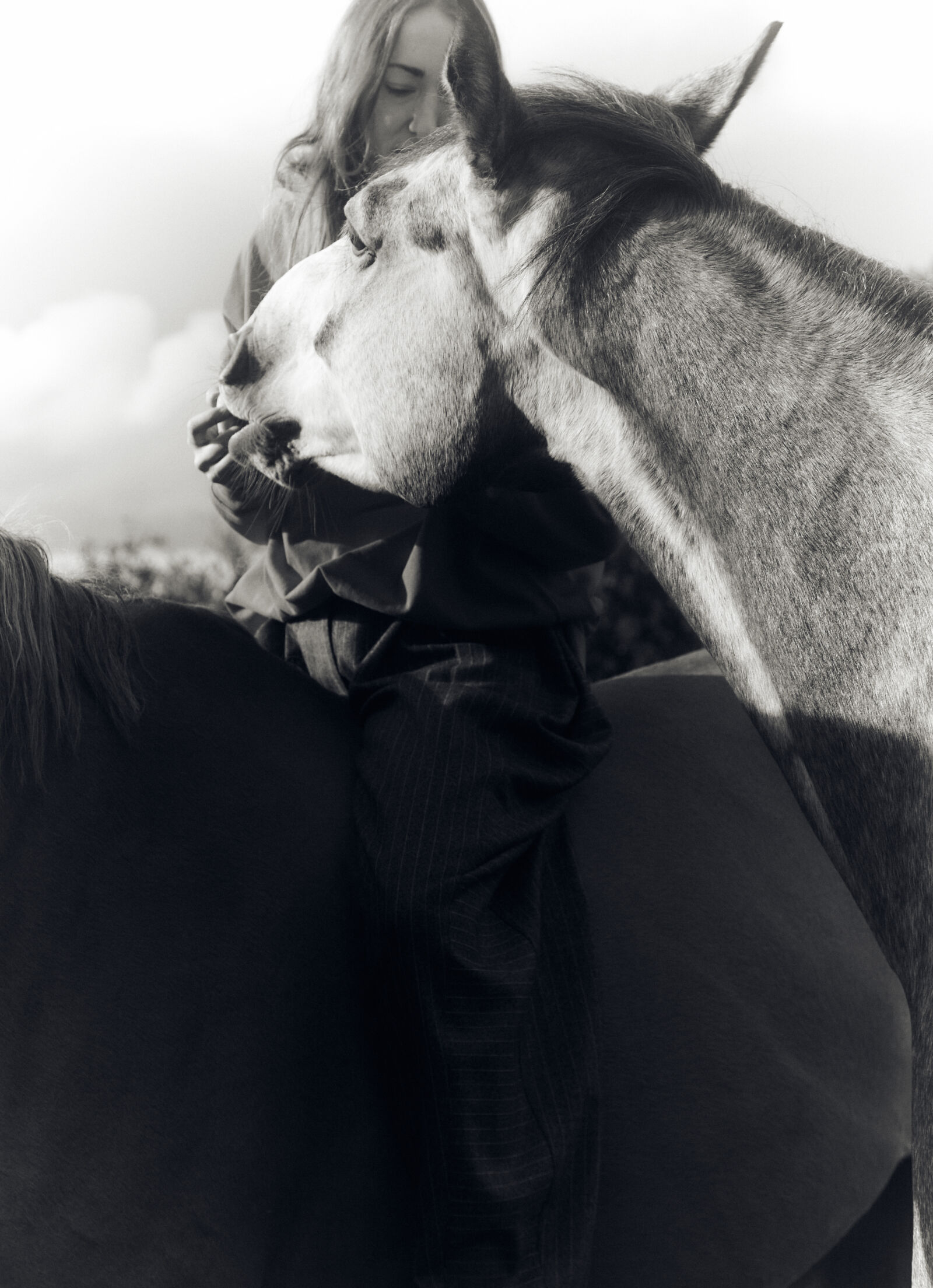 London-based photographer and director Daisy Walker shares a lifelong love of horses with Stella, having been riding since childhood and turning to these sensitive creatures as a source of emotional escapism and support. As part of our Healing Power of Horses campaign, she introduces us to her beloved boys, William and Bilbo, whilst wearing Winter 2023 pieces.
