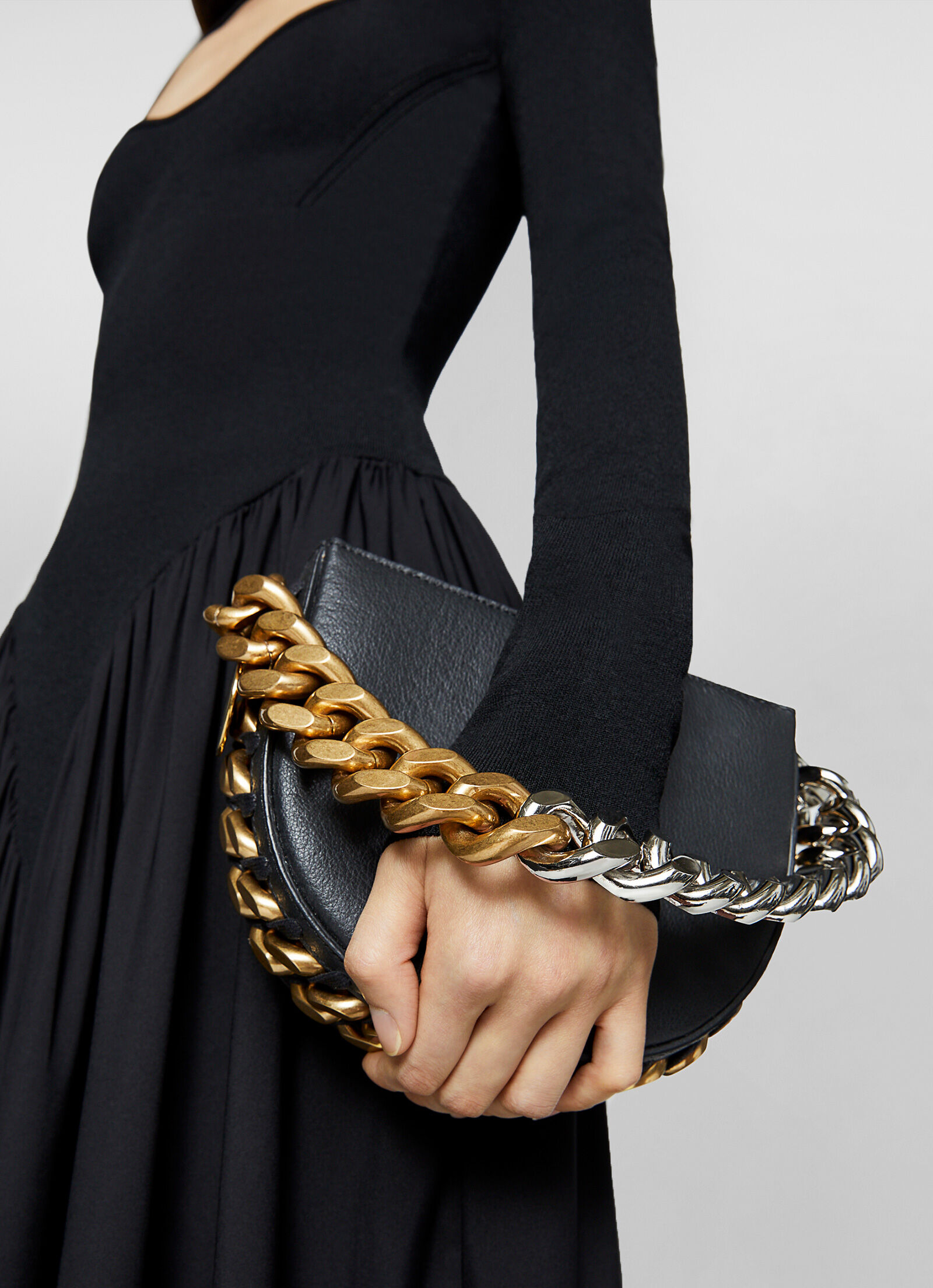 In 2017, Stella McCartney partnered with the visionary scientists and innovators at Bolt Threads. Bolt Threads grow mycelium in a vertical farming facility with just air, water and mulch to recreate a process that naturally occurs beneath the forest floor, using ingredients found in nature.