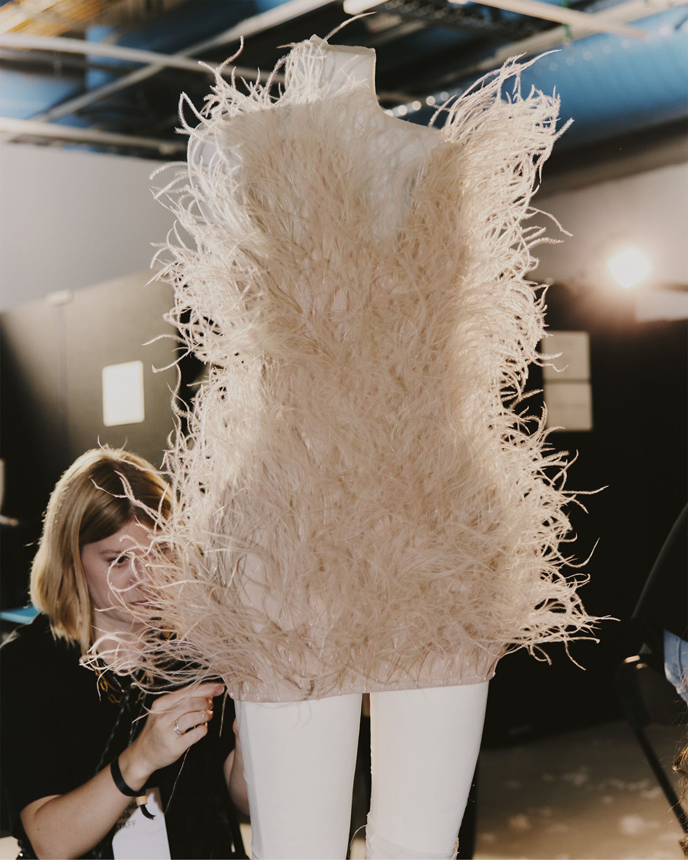 Developed by UK-based start-up FEVVERS, the pioneering material makes its debut with Stella McCartney. Rather than replicating feathers, FEVVERS establishes a new visual language – lightweight, layered and expressive – without harming a single creature.