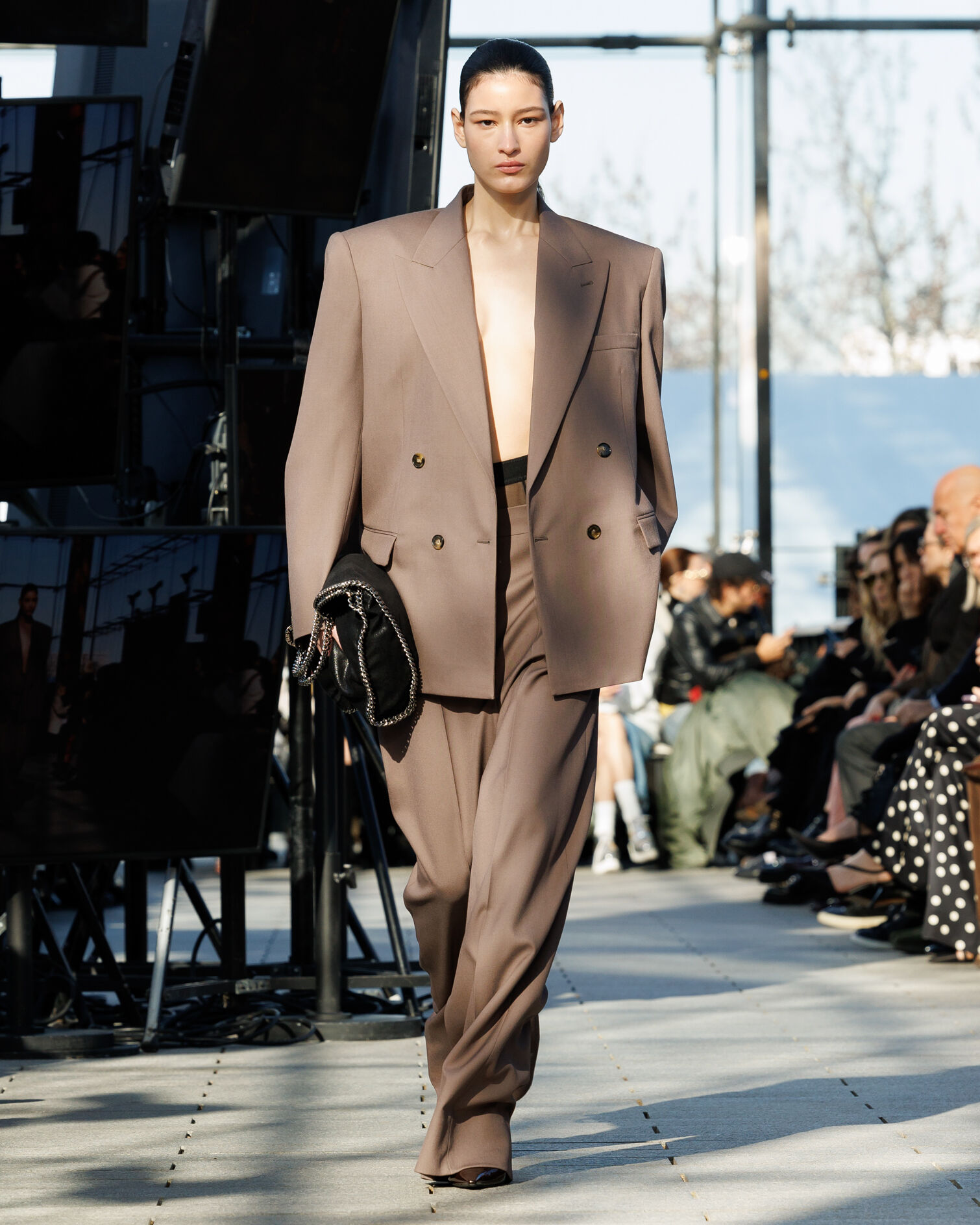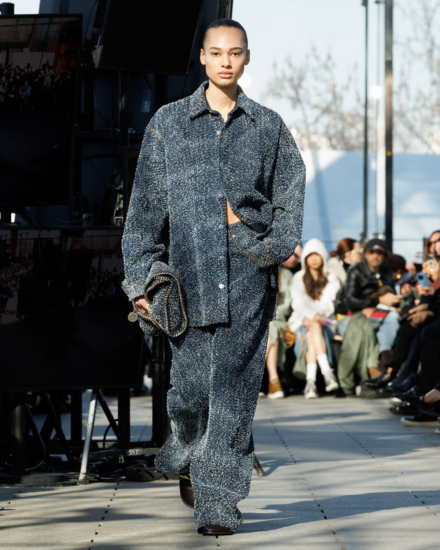 Focusing on the foundations we are celebrated for, our inspiration began with an activist and voice for Mother Earth — Stella McCartney herself. Pulling from her personal archive, life and design DNA, we curated a wardrobe of iconic pieces free from leather, feathers, fur and exotic skins – 90% of which are crafted from responsible materials. This Is a wardrobe of pieces Stella loves to wear; a return to the essence of our classic woman, with exaggerated proportions, elevated textures and Earth-friendly innovations flooded the runway.