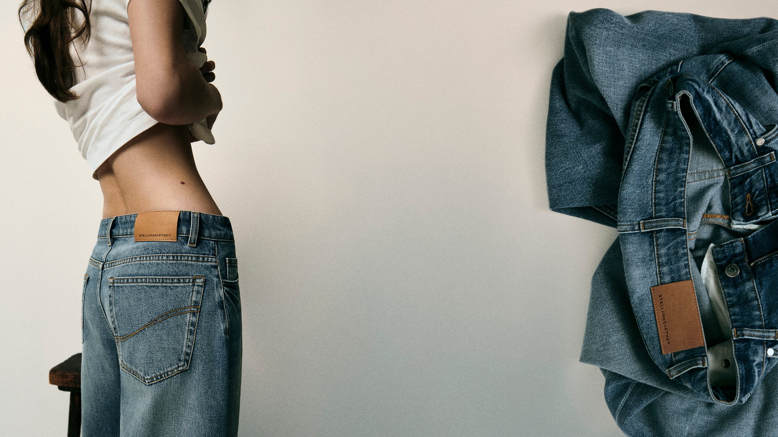 マッカートニーというブランドとデニムウェアは、洗練されていながらエフォートレス、フェミニンでありながらマスキュリン、時代や性別にとらわれないという点で共通しています。実用的で着心地のよいデニムにおいても、サステナブルな素材使いを追求。背面パッチ一つでも、動物性皮革の代替であるリンゴ由来のヴィーガン素材を使用しています。