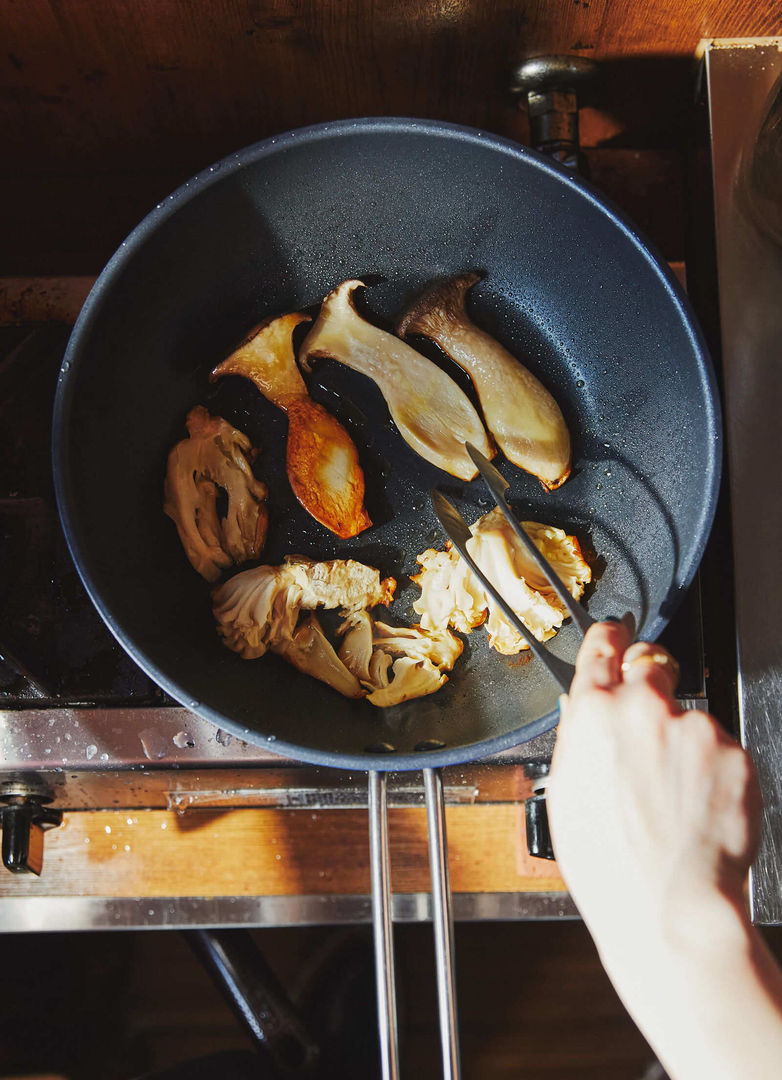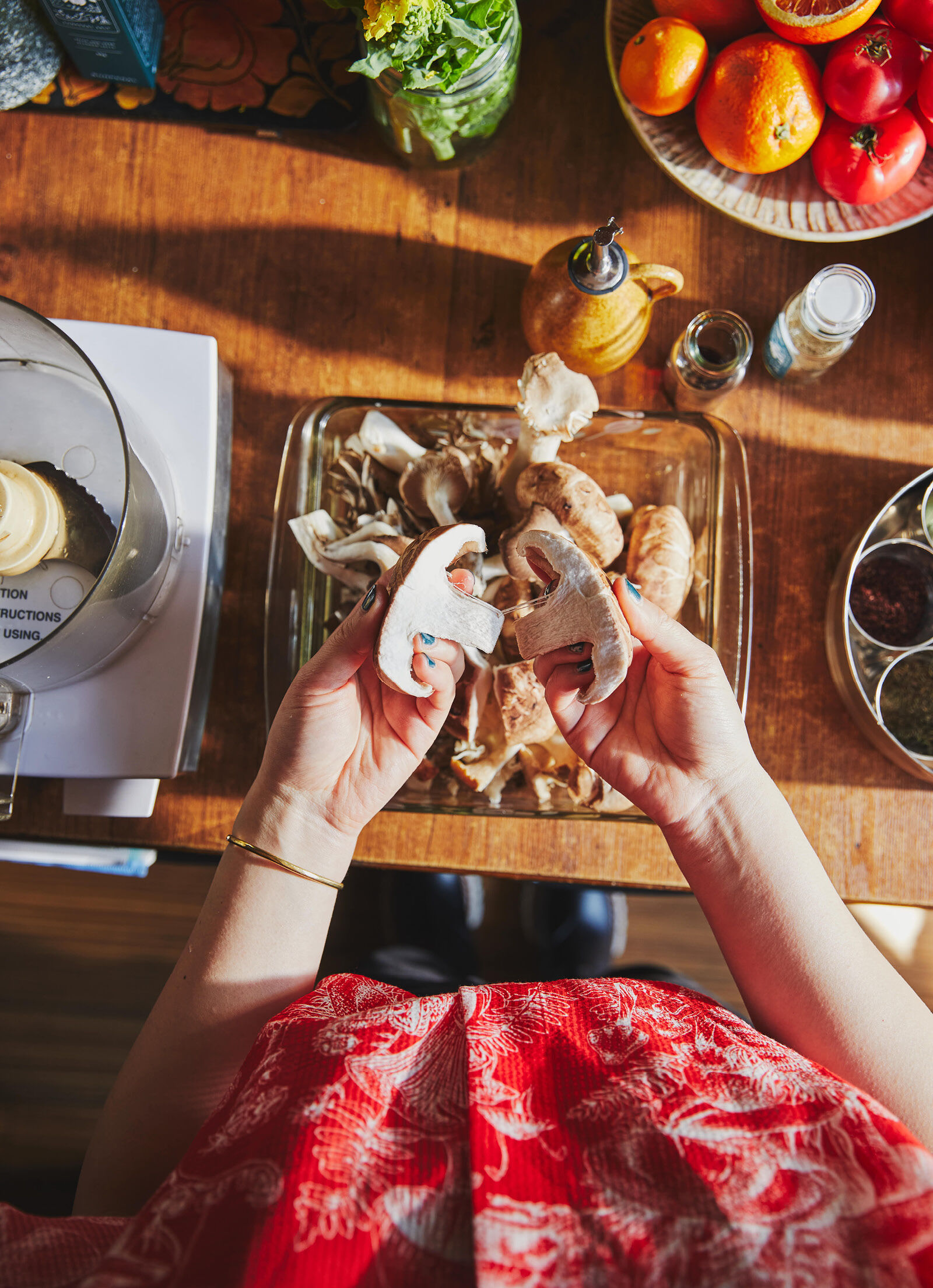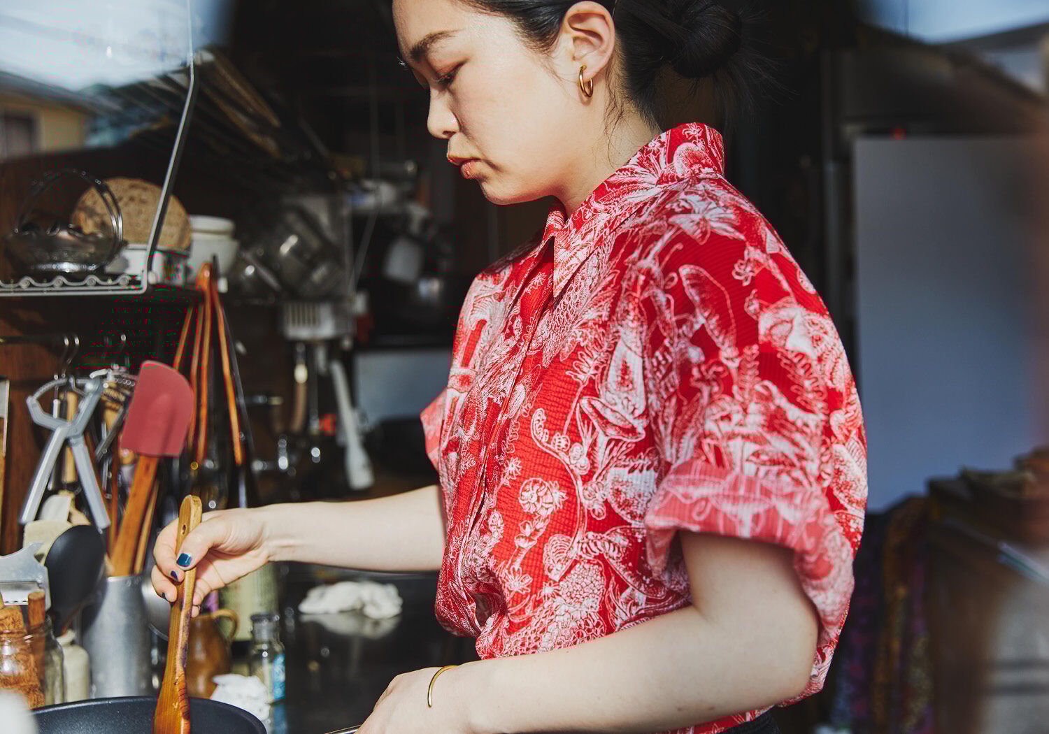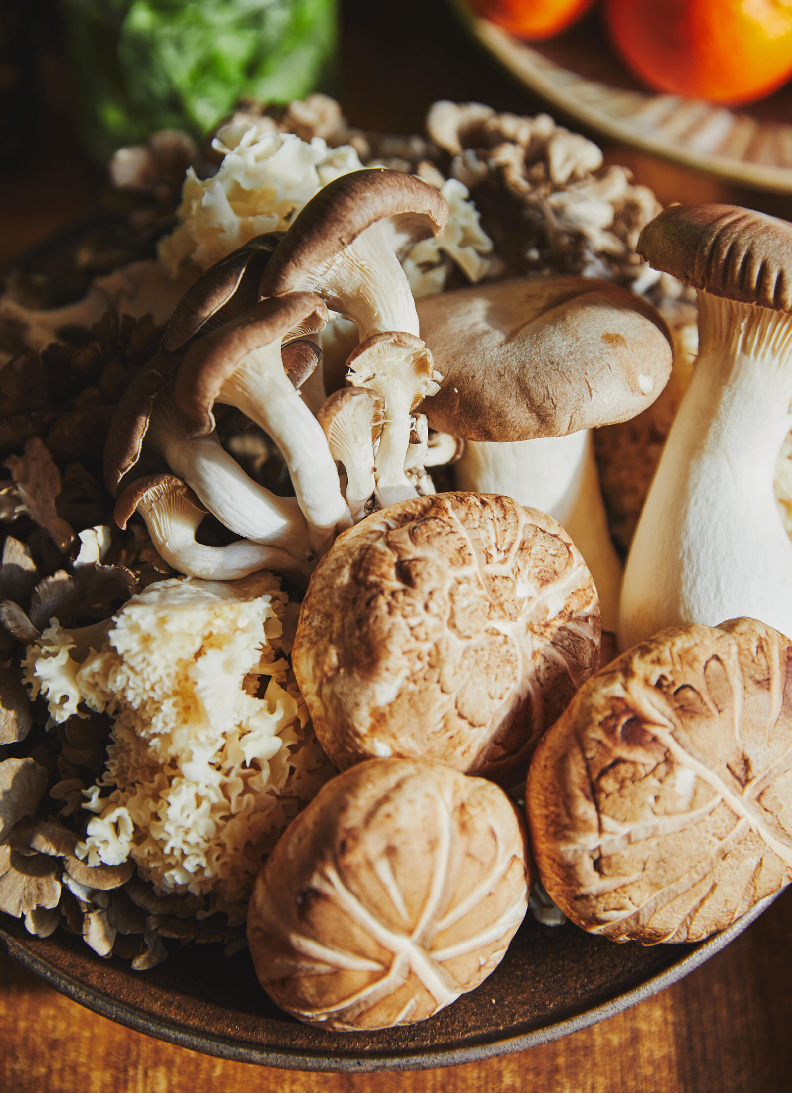 私自身、ヴィーガンで、ヴィーガンフードをつくるという仕事をする中、サステナビリティは生活の身近にあるものと考えています。そのため、ジャンルは違っても同じ方向を向いているサステナブルファッションのパイオニア的存在、ステラ マッカートニーのコレクションからインスパイアされたキノコ料理のレシピを考えながら、新たな発見がありました。