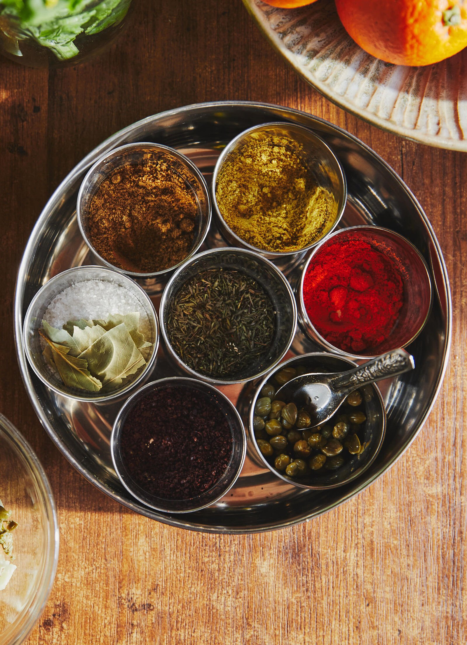 7,中身を取り出して、ボウルに移し、ドライハーブ、スパイス、オリーブオイル、お醤油、塩を加えて混ぜ合わせる。(オリーブオイルは全体がしっとりする程度入れる)