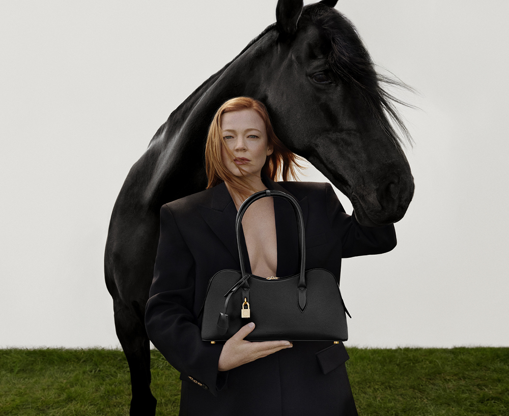 La silhouette sculpturale rend hommage à la force, à la beauté et à la puissance de l'animal préféré de Stella, le cheval. Le sac arbore un cadenas fonctionnel gravé de notre logo, ainsi que des clés dissimulées à l'intérieur de l'étiquette.