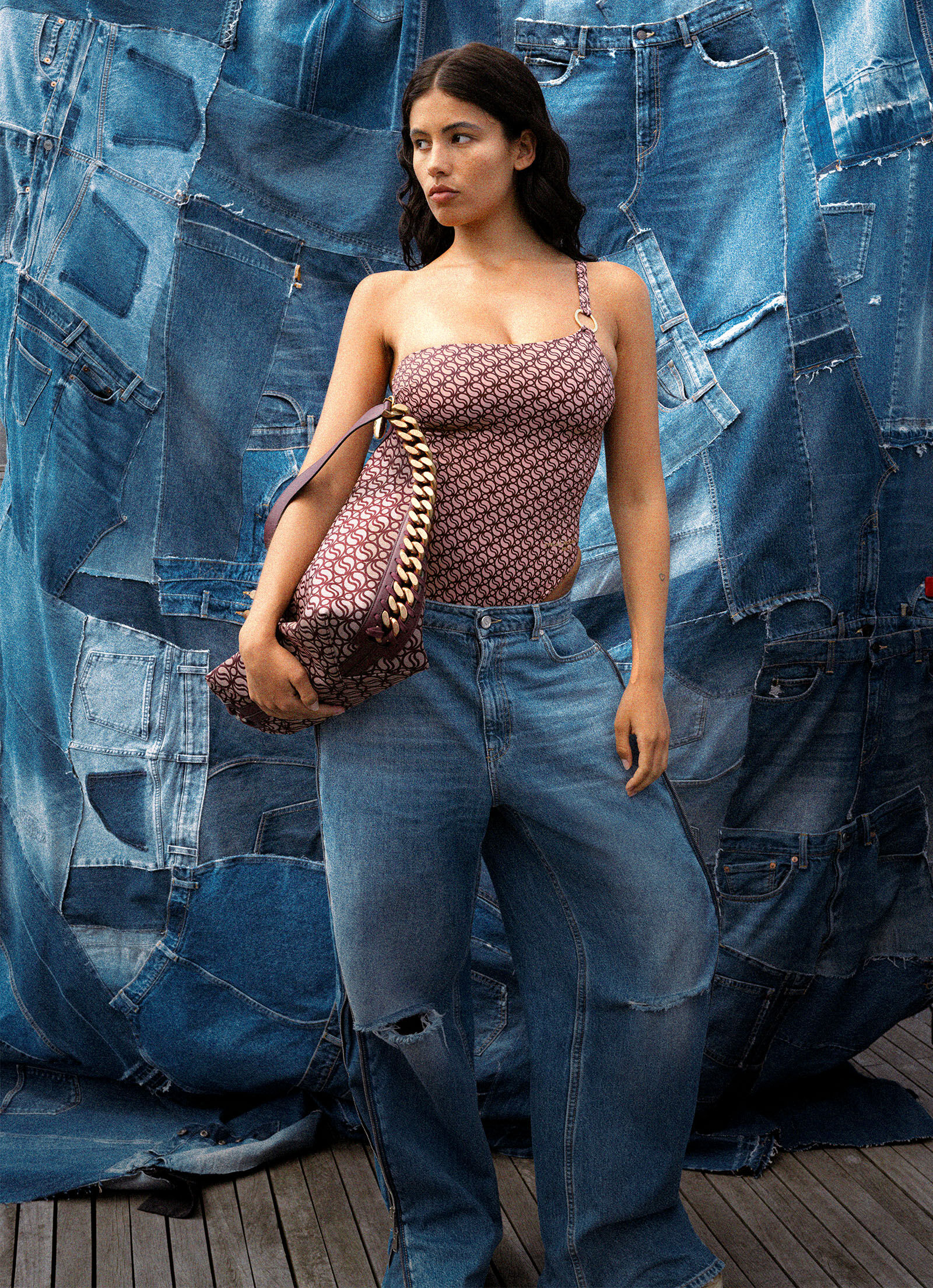 Organic cotton is grown using up to 70% less water compared to conventional cotton, and with no toxic chemicals. Our denim backdrop is repurposed dead stock, part of our commitments towards reducing our waste.